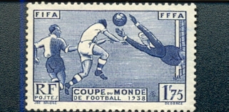 FRENCH Stamp (SG612 value 1.75F) issued to commemorate hosting the 1938 World Cup - shown below mint £15. This was the only postage stamp issued by any country for the 1938 tournament. FRENCH POSTER STAMP (red) issued for the 1938 world cup. There were three coloured 'poster' stamps produced in 1938 by the French, each sporting the world cup logo. The one for sale is the red version (there were also blue and green). OUT OF STOCK