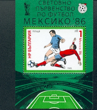 1986 TOURNAMENT IN MEXICO ALGERIA set of 2 stamps (SG928-9) £6 BRAZIL Miniature Sheet (SG MS2175) £6.50 BULGARIA Miniature Sheet (below) £3 HUNGARY miniature sheet (MS3695) £4 HUNGARY set of six stamps (SG3689-94) £5.75 MEXICO set of 5 stamps showing previous generations of footballers in paintings (SG1796-1800) £4.75 MEXICO imperforated miniature sheet (by Sergio Morales) £4 MOROCCO set of 2 stamps (SG701-2) £3 OUT OF STOCK PARAGUAY miniature sheet consisting of 9 pictures of Paraguay teams (1930, 1950, 1958, 1986) from world cup competitions where they qualified for the finals £13.50 PARAGUAY set of 6 stamps (Yv2221-2226) £6 PARAGUAY set of 3 stamps (YvA1019-1021) £8.50 POLAND single stamp (SG3041) £1 RUSSIAN set of three stamps issued for the tournament £2.50 URUGUAY single stamp (SG1887) £5